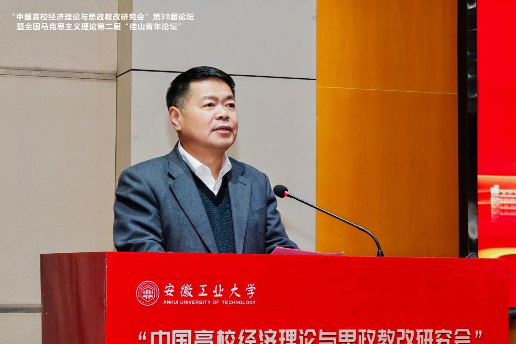 11月22日,由中国高校经济理论与思政教改研究会和安徽工业大学联合主办,安徽工业大学马克思主义学院承办,《思想战线》编辑部、《扬州大学学报》(人文社科版)编辑部、《安徽日报》理论部联合协办的“中国高校经济理论与思政教改研究会”第38届论坛暨全国马克思主义理论第二届“佳山青年论坛”成功举办。来自复旦大学、浙江大学、武汉大学、哈尔滨工业大学、厦门大学、西南大学、中国社会科学院、南开大学等高校的180多位专家学者和师生代表参加会议。中国高校经济理论与思政教改研究会会长徐丰臻教授、校党委书记陆林,校党委常委、党委宣传部部长王菁出席开幕式。开幕式由马克思主义学院院长郑洁教授主持。